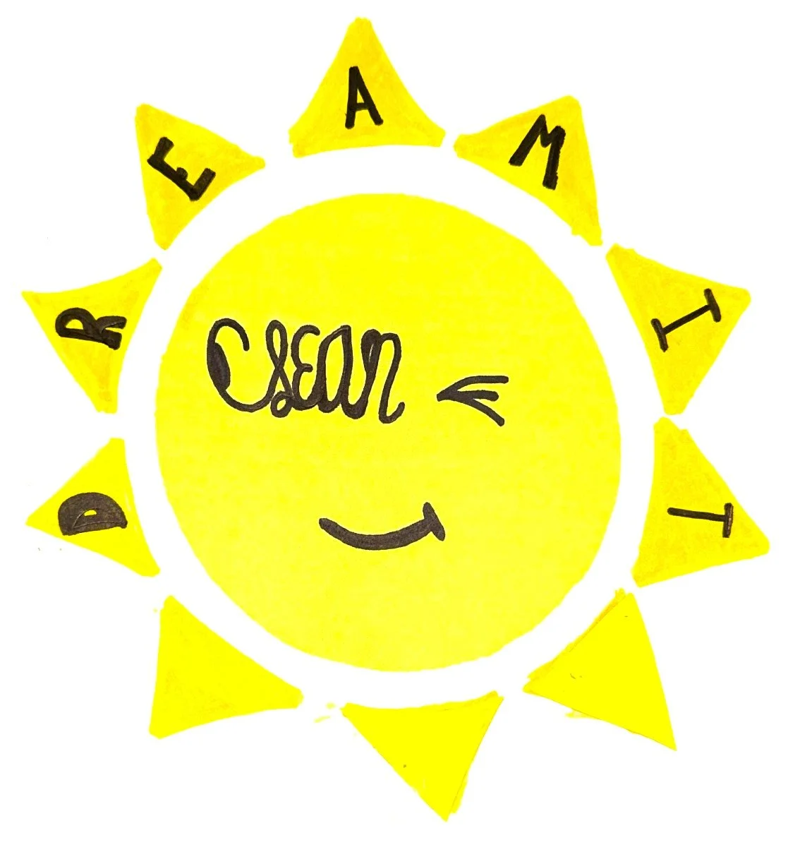 Yellow sun illustration with a winking face, surrounded by triangle rays spelling "DREAM IT" and the word "CSEA" inside the sun.